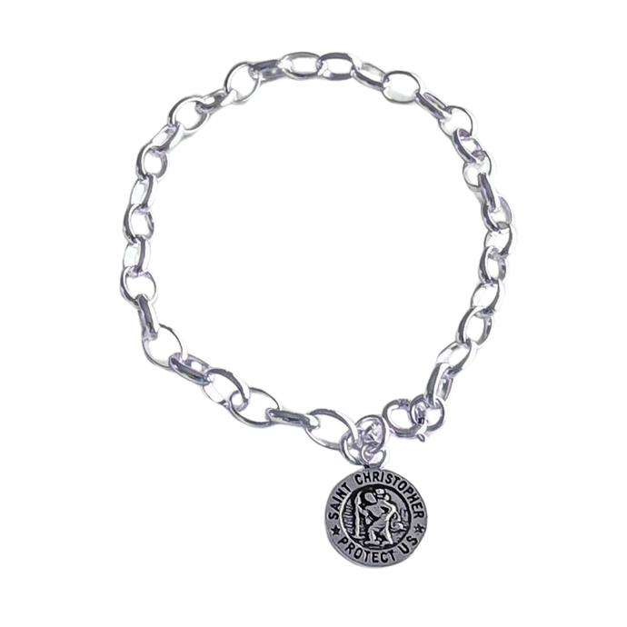 • 925 Sterling Silver Oval Link Bracelet with St Christopher Disc Charm (925BRAC028)