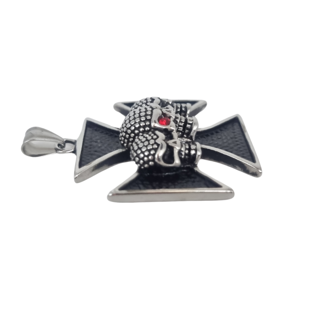 The Maltese Cross with skulls is a compelling blend of history and symbolism, making it a striking and meaningful accessory.