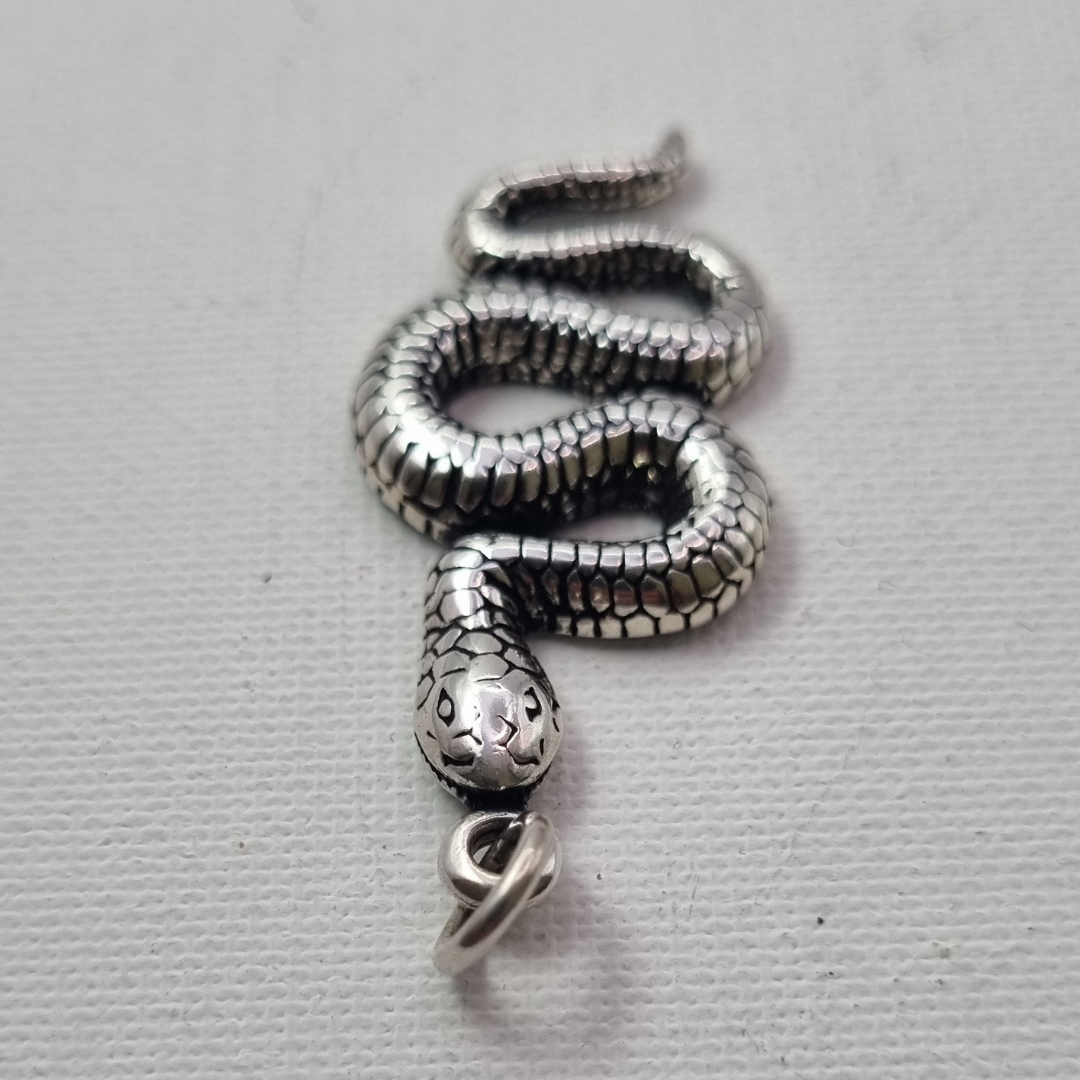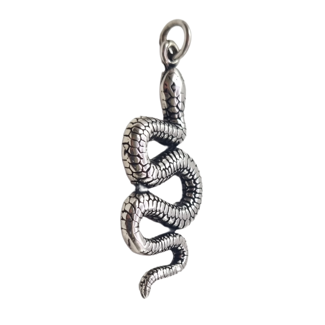 A snake pendant in 925 silver is a captivating piece of jewelry, often rich in symbolism. The serpent is associated with transformation, rebirth, and wisdom in various cultures, making it a meaningful accessory. Crafted in silver, the intricate details of the snake's scales and coiled form add to its allure, creating a striking and elegant design.
