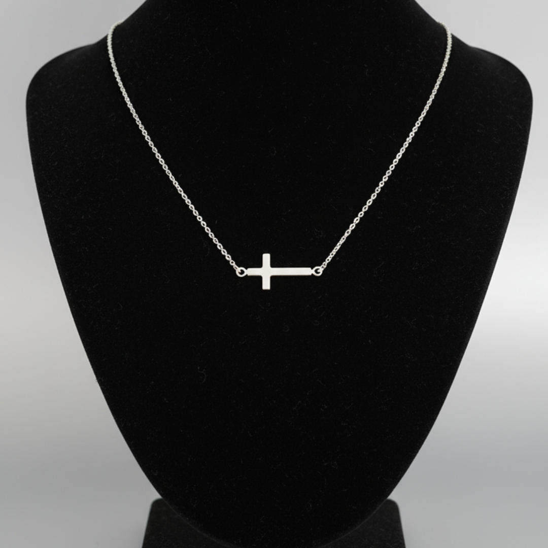 Gracefully minimalist yet deeply meaningful, this horizontal cross necklace is crafted from genuine 925 sterling silver, offering both spiritual resonance and modern elegance. The sleek, streamlined cross rests gently across the collarbone, symbolizing faith, balance, and inner peace. Its horizontal orientation evokes a sense of grounded strength and quiet confidence-perfect for those who carry their beliefs with subtle grace.