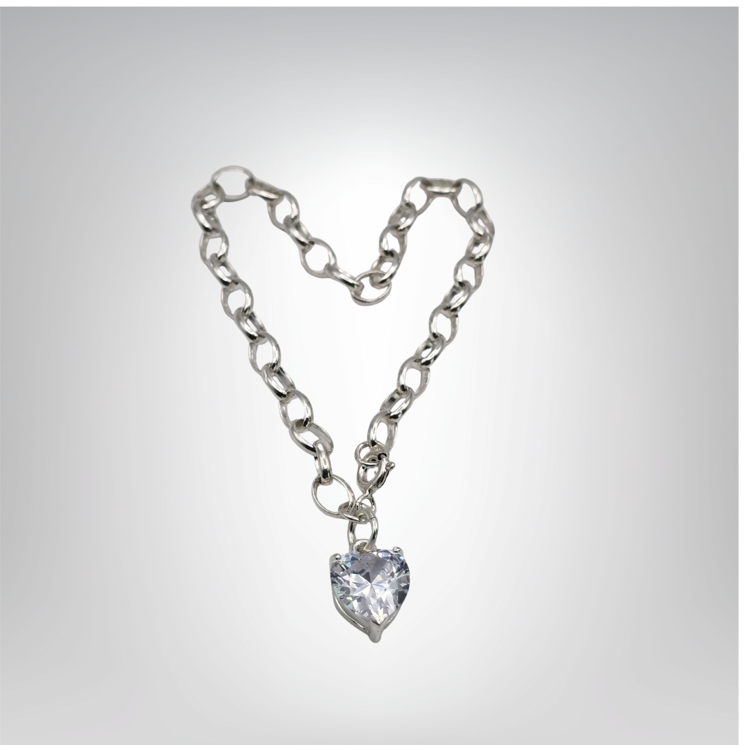 Sterling Silver Bracelet with CZ Stone Heart Charm