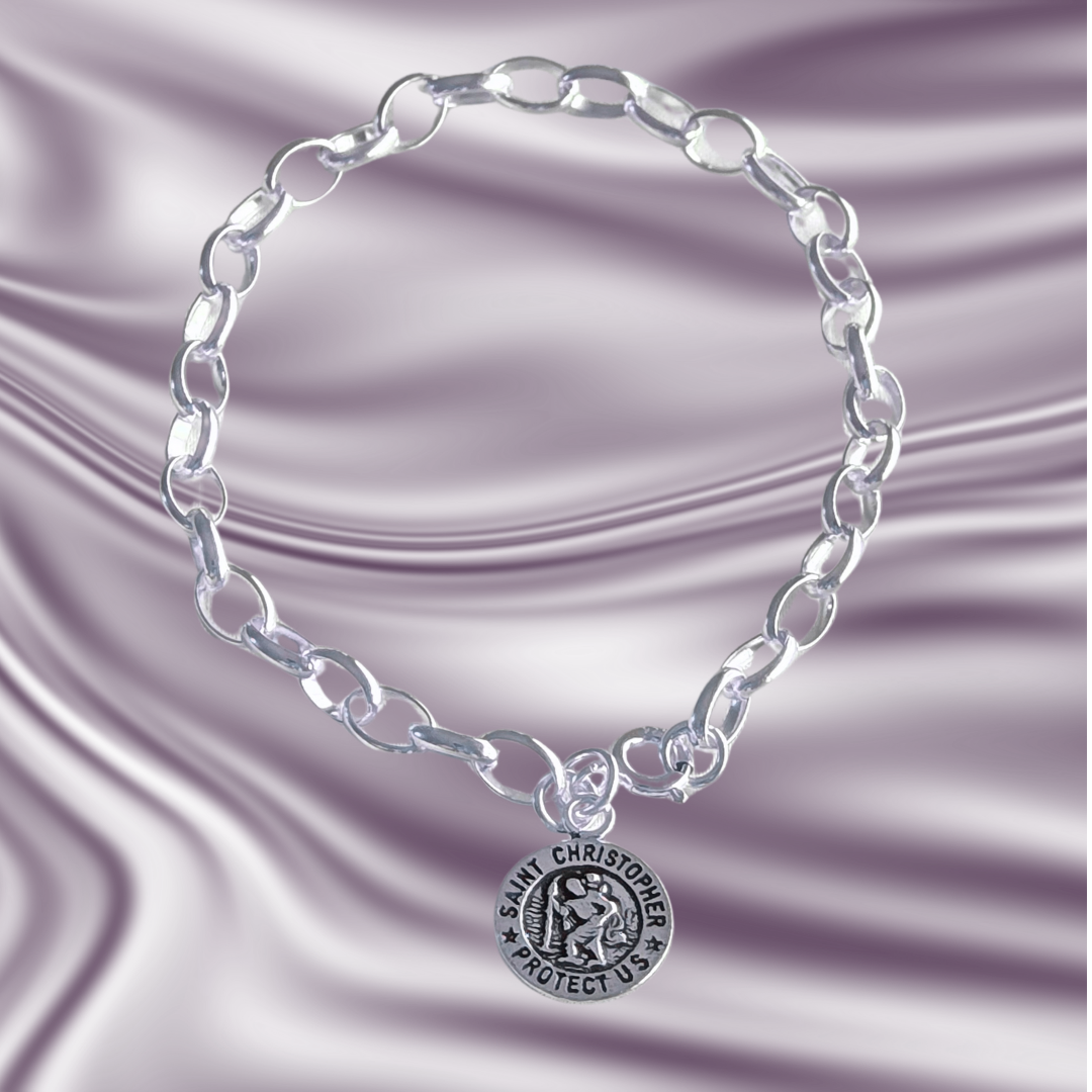 This 925 Sterling Silver bracelet is a beautiful blend of faith, symbolism, and timeless style. The Saint Christopher medallion-engraved with "Saint Christopher Protect Us"-is more than just decoration. In Christian tradition, Saint Christopher is the patron saint of travelers, believed to offer protection and safe passage. Many wear his image as a talisman, not only for physical journeys but also as a reminder of spiritual guidance through life's challenges.