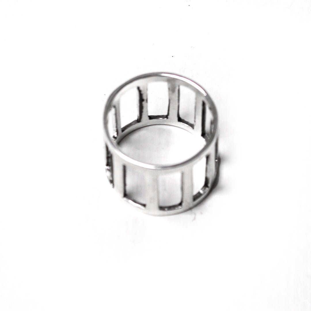 Manufactured using the finest sterling silver available means it's 100% luxury crafted to meet the demands of the highly discerning individual. It has a classic style and exudes elegance with its open, cage-like structure featuring rectangular cutouts. The polished silver finish adds to its refined and timeless look.