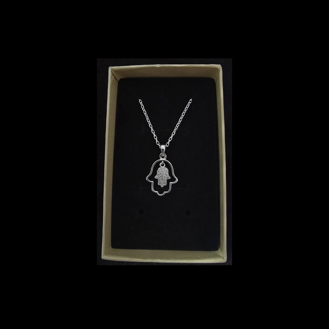 Layered with meaning and shimmering elegance, this double Hamsa pendant necklace is a powerful fusion of spiritual symbolism and modern design. Crafted from genuine 925 sterling silver, the pendant features two delicately sculpted Hamsa hands-an outer silhouette and a smaller, gemstone-adorned inner charm-creating a dynamic, mobile design that moves gracefully with you.