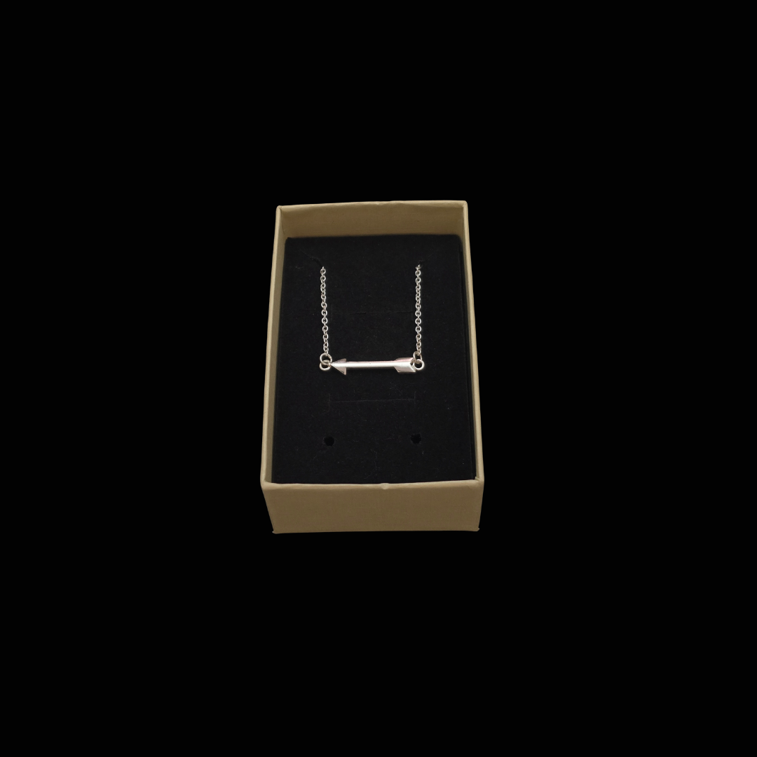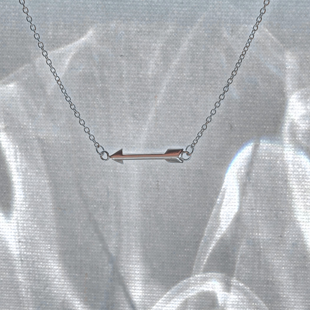Sleek, symbolic, and effortlessly stylish, this horizontal arrow necklace is crafted from genuine 925 sterling silver, embodying direction, focus, and forward momentum. The minimalist design features a finely sculpted arrow-arrowhead to the left, fletching to the right-anchored between both ends of a delicate chain. Its clean lines and polished finish reflect clarity and purpose, making it a perfect emblem for those who move boldly toward their goals.