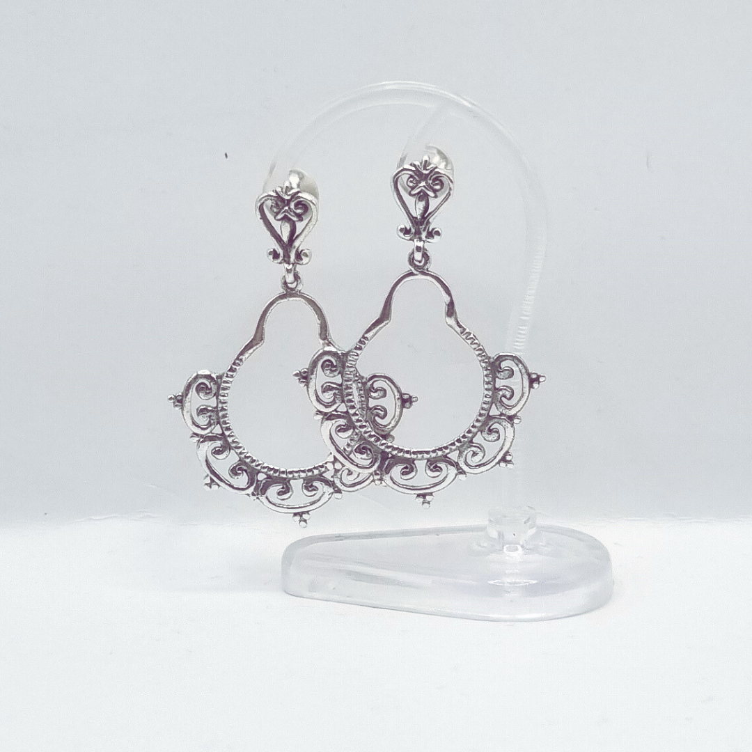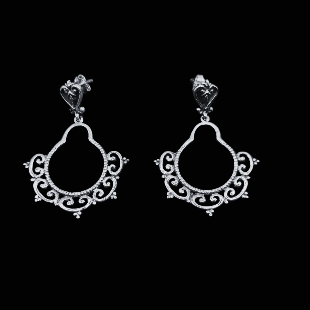 These 925 sterling silver earrings have a stunning bohemian airy design! The studs provide a secure and classic fit, while the hanging piece adds an elegant, intricate touch. The openwork floral and scroll motifs give them a timeless, antique aesthetic, making them perfect for those who appreciate ornate, handcrafted jewelry.