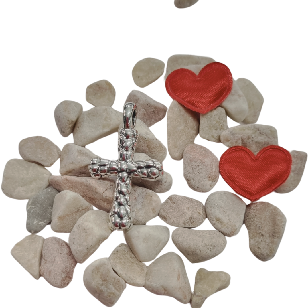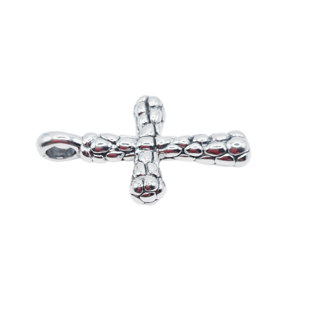The 925 silver cross pendant is a unique piece with a textured, bubble-like surface that adds an intricate and modern touch to its design. The loop at the top makes it perfect for wearing as a necklace. Crafted from 925 sterling silver, it ensures durability and quality while maintaining a sleek and stylish appearance.