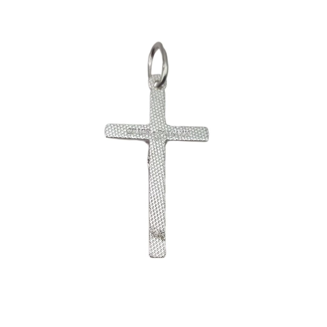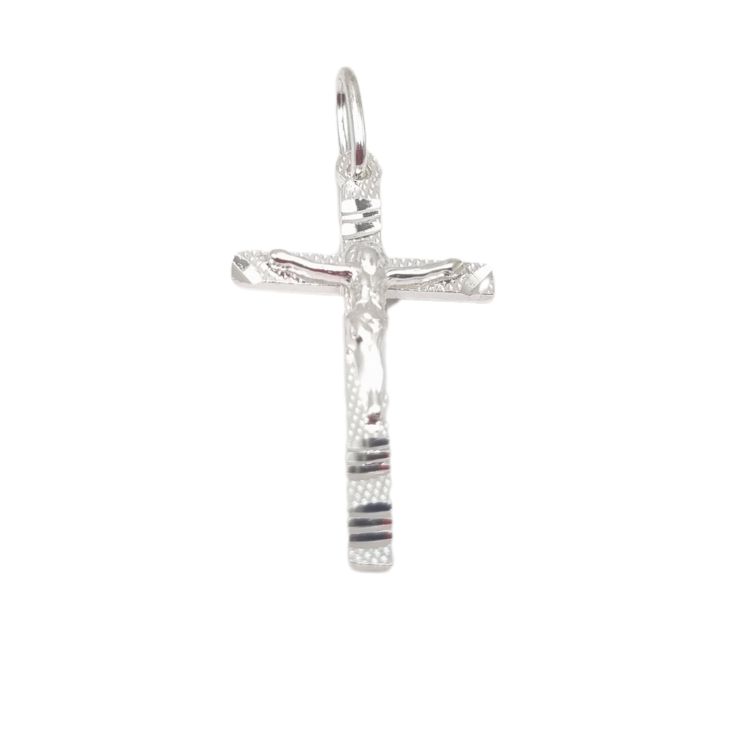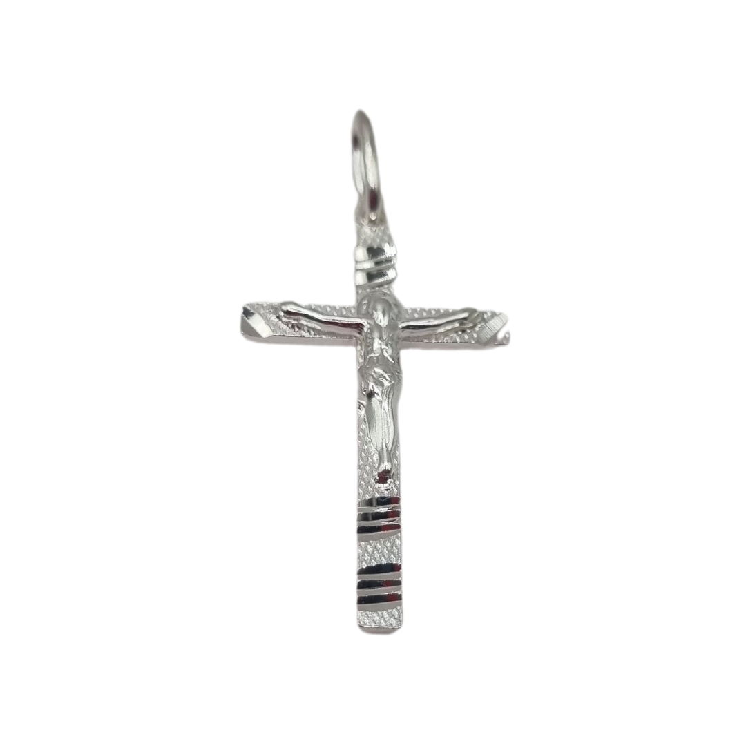 The 925 silver cross pendant with a crucifix is a striking piece. It features a detailed depiction of Jesus Christ on the cross, with intricate designs on the cross itself. The unique addition of laser cut striped patterns adds a modern touch to its traditional religious symbolism. The craftsmanship is impressive, making it both a meaningful and stylish accessory.