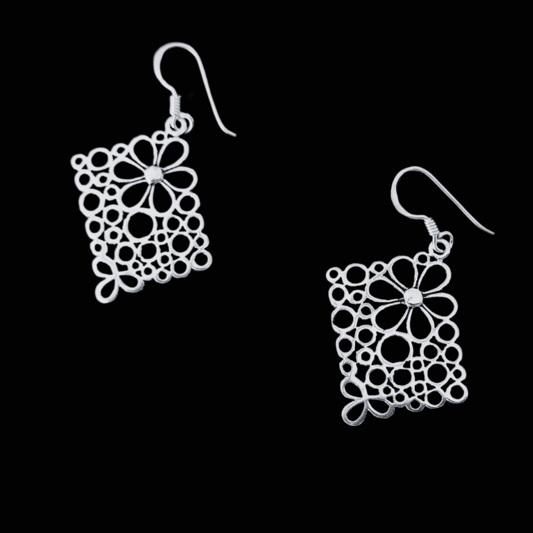 These 925 sterling silver hanging earrings feature a delicate flower-inspired design with a rectangular shape, giving them a unique and elegant look. The intricate floral patterns add a vintage charm, while the high-quality sterling silver ensures durability and a lasting shine. The hanging style allows for graceful movement, making them a sophisticated accessory for various occasions.