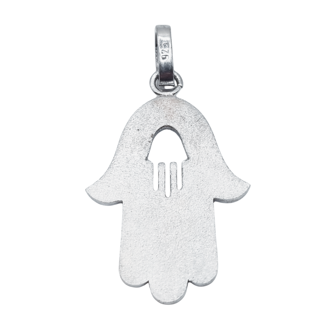 This pendant is a beautiful combination of symbolism and craftsmanship. The Hamsa hand is a well-known protective symbol, often associated with good fortune and warding off negative energy. The evil eye design enhances its protective qualities, believed to shield against harmful intentions. Made from 925 silver, it ensures durability and quality, while the blue coating adds a striking visual appeal.