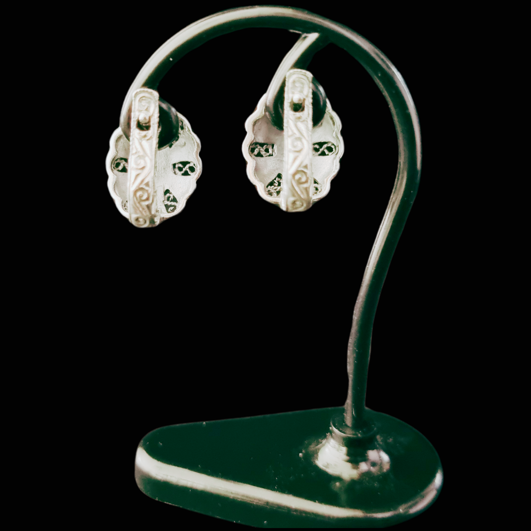 These 925 sterling silver huggie earrings showcase intricate filigree and laser-cut designs, creating a delicate yet bold aesthetic. The floral or star-like motif at the center, surrounded by petal-like shapes, adds an elegant touch to the craftsmanship. The fine airy workmanship ensures a lightweight feel while maintaining durability and shine.