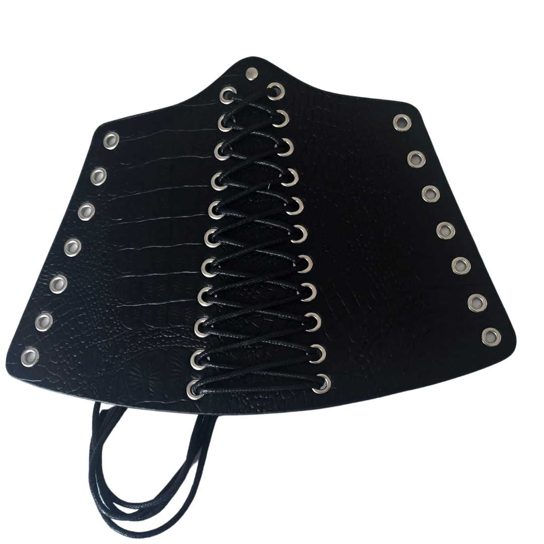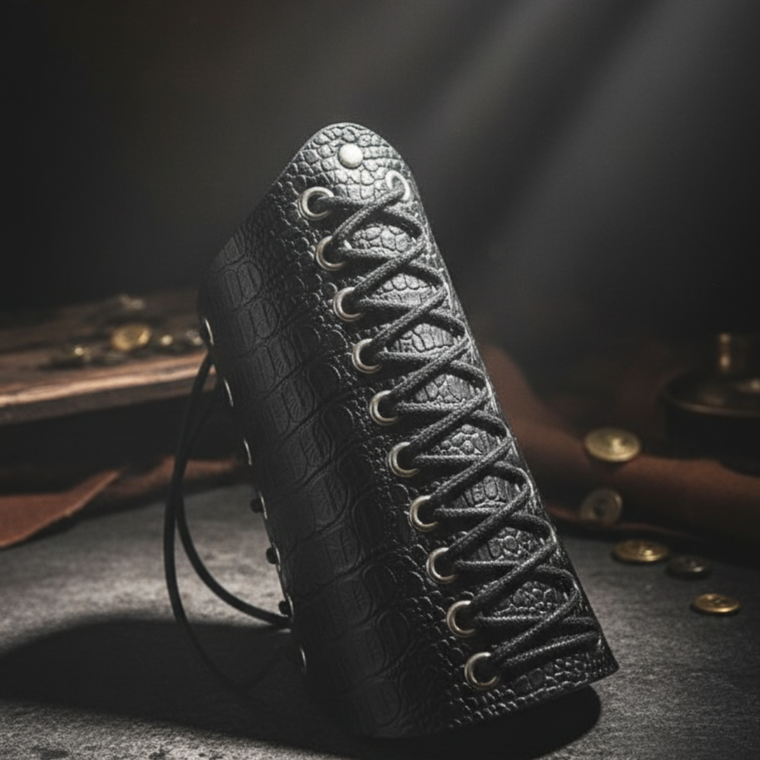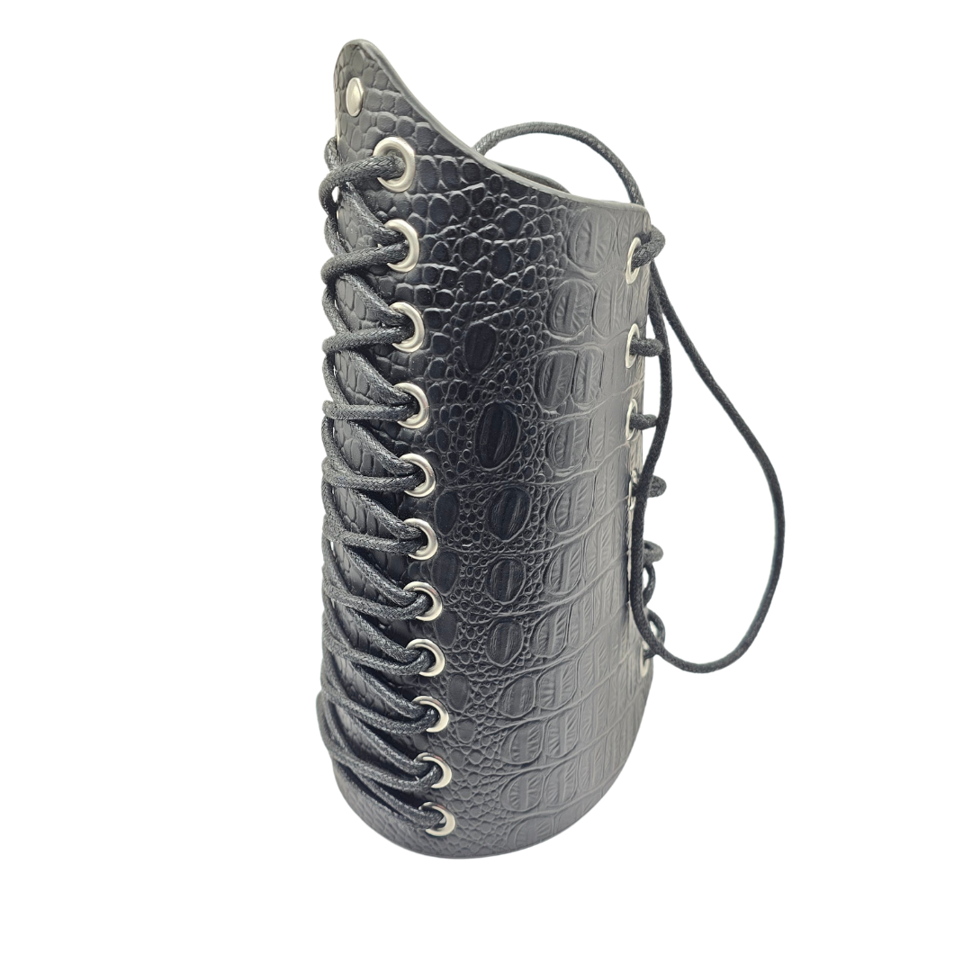 Step into a world where fashion meets fantasy with this stunning lace-up arm cuff. More than just an accessory, it's a piece of wearable art designed for those who dare to stand out. Crafted from premium, supple PU leather, this cuff offers the luxurious look and feel of genuine leather while providing a durable, animal-friendly alternative. The material is carefully selected not only for its sleek, matte finish but also for its resilience, ensuring this piece will be a long-lasting staple in your collection.